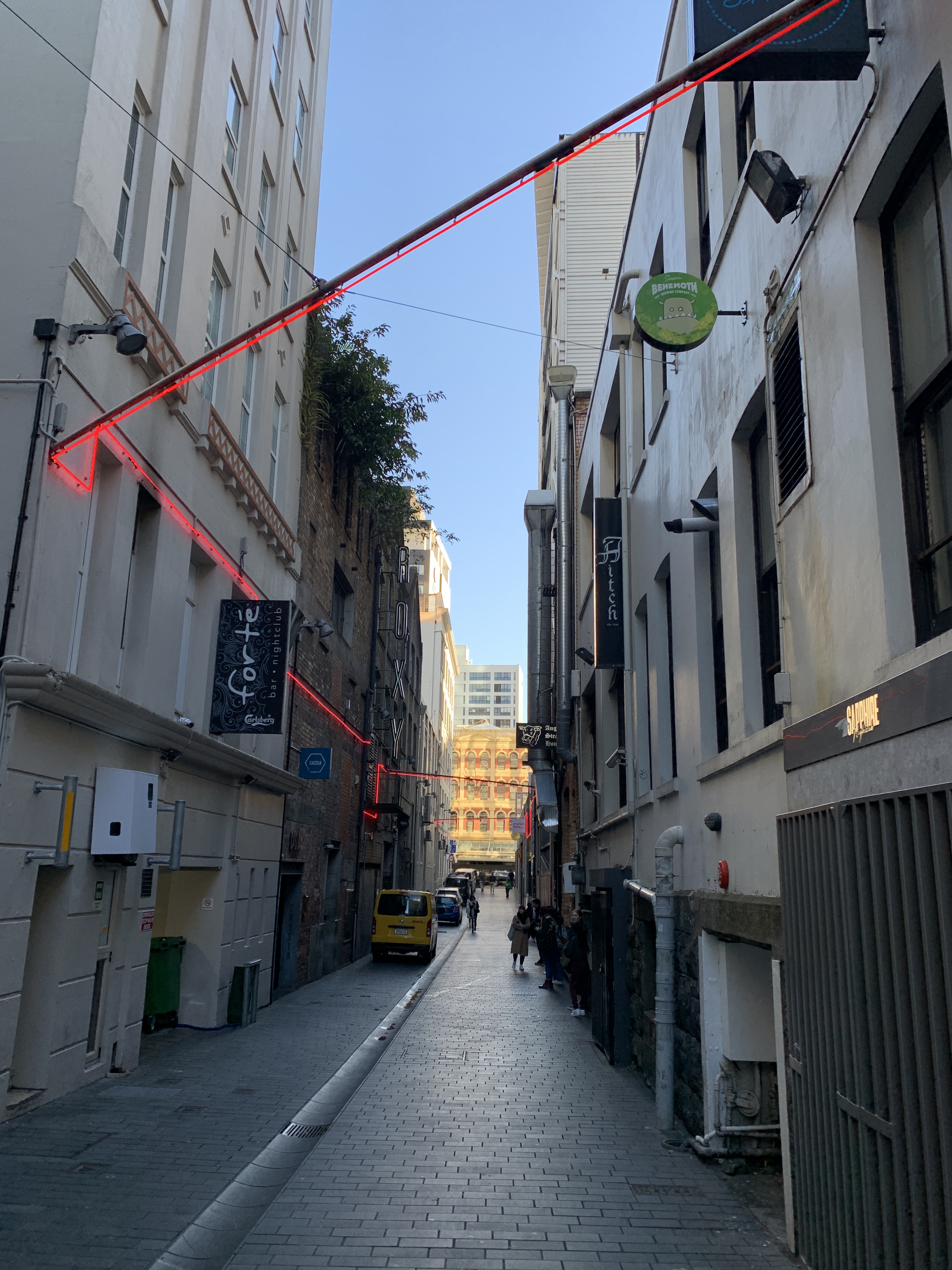 In 2011, Auckland Council began upgrading this space as part of the upgrades for streets with shared spaces. Since its series of upgrades in the past such as in the 1960s, it has become a lively laneway with colourful painting murals, light up signs and the notorious red strip lighting installation. Even so, during the day it is used as a short cut to Customs Street from Fort Street and is used by couriers, pedestrians, cars, scooters and Ubers alike.