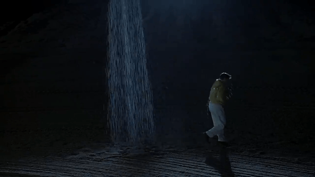 Pink and purple are often associated with extravagance, ambiguity, innocence, romance, and overall…harmlessness. So it’s fitting that Villeneuve uses this color to represent the romantic interests to K. (Even if the romantic aspect is clearly manufactured by the world around him.) These hues serve as an almost ethereal break from the horrors happening to him. It’s only in these moments towards the end of the film that K realizes his true purpose or calling. One could look at this use of color as a way to bridge the gap between the orange hue of Vegas, to the brutal blues and white of whats to come.
